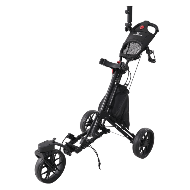 CITYSPORTS 3-Rad Golftrolley – Kompakter, klappbarer Golfwagen aus Aluminium mit Flaschenhalter, Schirmhalter, Aufbewahrungstaschen & Ballhalter